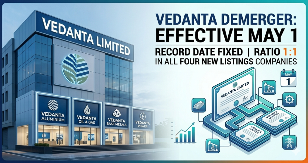 Vedanta Demerger Effective from May 1: Record Date Fixed, Ratio 1:1 in all Four New Listings Companies